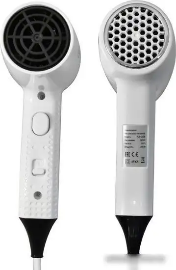 Эта сушилка для волос Puff 1202B создана для быстрой и эффективной сушки. Она подходит для всех типов волос и обеспечивает мощность в 1200 Вт. Скорость воздуха достигает 10 м/с, что помогает сушить волосы быстрее. Максимальная температура воздуха — 65 °C, она безопасна и предотвращает повреждения. Корпус из пластика легкий и прочный, весит всего 1,05 кг. Белый цвет делает устройство стильным и легко вписывается в любой интерьер. В комплекте есть дополнительная розетка для подключения других устройств. IPX1 защищает сушилку от брызг, что увеличивает её долговечность. Размеры: ширина 23,3 см, глубина 8,3 см и высота 26 см, что облегчает хранение и транспортировку. Модель проста в использовании и подходит для домашнего ухода за волосами.