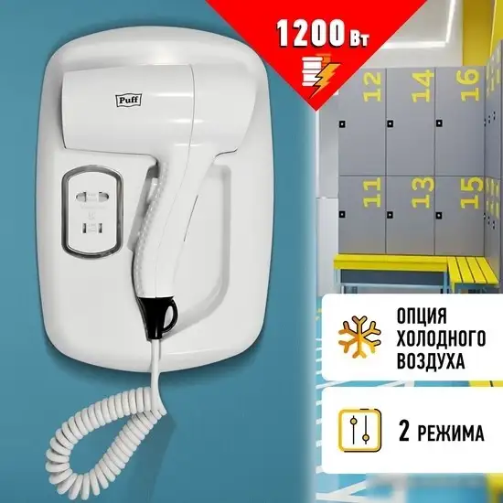 Сушилка для волос Puff 1203B (белый, с доп. розеткой)