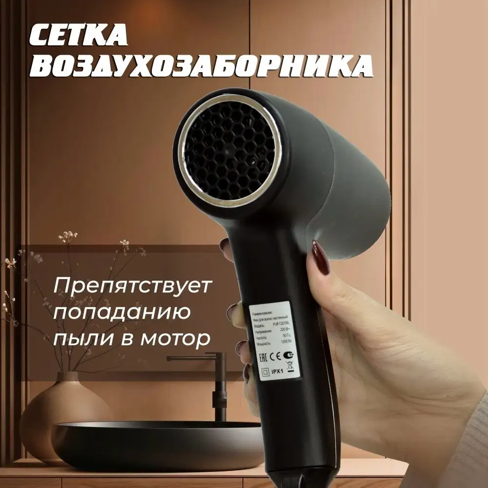 Сушилка для волос Puff 1205Bl мощностью 1200 Вт быстро сушит волосы и легко управляется благодаря регулировке скорости и температуры воздуха. Ее корпус сделан из прочного пластика и легко держать в руке, а компактный размер позволяет удобно брать с собой. Максимальная температура воздуха 65 °C обеспечивает эффективную сушку без повреждения волос. Скорость воздуха достигает 10 м/с, что ускоряет процесс укладки. Устройство работает при низком весе — всего 0.72 кг, поэтому оно не утомит при длительном использовании.