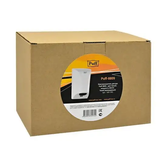 Сушилка для рук Puff 8809 работает автоматически и быстро высушивает руки за 10 секунд. Она обладает мощностью 850 Вт, что обеспечивает эффективную сушку. Корпус выполнен из прочного пластика в белом цвете, он легкий и компактный — всего 0,6 кг, что удобно для установки в любом помещении. Сушилка оснащена функцией защиты от перегрева, которая предотвращает повреждение устройства при длительном использовании. Автоматическое включение делает использование простым и гигиеничным — не нужно прикасаться к прибору. Устройство соответствует стандарту защиты IPX1, что делает его устойчивым к пыли и каплям воды. Размеры 14.3x15x21.5 см позволяют разместить его в любой необходимой зоне. Эта модель подходит для офисов, кафе и общественных мест, где важна быстрая и удобная сушка рук.