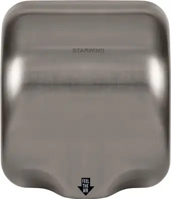 Сушилка для рук StarWind SW-HD888 имеет классический дизайн и мощность 1800 Вт, что обеспечивает быструю сушку за около 15 секунд. Она использует поток воздуха скоростью 60 м/с, чтобы эффективно высушить руки. Автоматическое включение позволяет удобно пользоваться устройством без дополнительных кнопок. Корпус выполнен из металла, что делает сушилку прочной и долговечной. Для защиты от перегрева предусмотрена функция автоматической блокировки. Устройство работает с уровнем шума 70 дБ, не мешая окружающим. Степень защиты IPX1 обеспечивает безопасность при использовании в влажных условиях. Размеры сушилки небольшие: ширина 14 см, глубина 15 см, высота 21,5 см, вес 4,3 кг. Благодаря этим характеристикам, изделие легко установить и оно прослужит долго. Сушилка идеально подходит для общественных помещений, где важна быстрая и гигиеничная сушка рук.