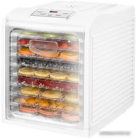 Сушилка для овощей и фруктов Kitfort KT-1909 мощностью 700 Вт эффективно сушит продукты, сохраняя их полезные свойства. Ее конвективный нагреватель сбоку равномерно распределяет тепло, а регулируемый термостат позволяет выбирать температуру от 35 до 70 °C. Устройство имеет 9 уровней с расстоянием 30 мм между ними, что помогает сушить разные виды продуктов одновременно. Таймер на 19,5 часа позволяет полностью контролировать процесс сушки. Цифровая индикация температуры помогает следить за режимом. В комплект входят поддон для жидкости и сетка для трав и ягод, что расширяет функциональность. Устройство управляется электронным управлением, что делает его использование простым. Корпус выполнен из белого пластика и легко размещается на кухне. Благодаря компактным размерам и весу 6,7 кг, сушилку удобно переносить и хранить.