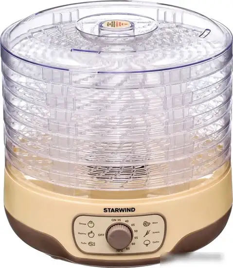 Сушилка для овощей и фруктов StarWind SFD2520 — это устройство с мощностью 250 Вт, которое быстро и равномерно высушит ваши продукты. Она оснащена пятью уровнями размером 26x3 см, каждый из которых имеет расстояние между уровнями от 20 до 35 мм, что позволяет сушить разные виды продуктов одновременно. Регулируемый термостат в диапазоне 35-70 °C помогает выбрать оптимальную температуру для каждого продукта, а механическое управление поворотным переключателем делает настройку простой. Максимальная загрузка составляет 8 кг, что удобно для больших партий сушеных овощей и фруктов. Корпус сделан из прочного пластика в бежевом и коричневом цвете, что легко впишется в любую кухню. Устройство не имеет таймера или индикации температуры — всё управление осуществляется вручную. Расстояние между уровнями позволяет продуктам свободно циркулировать, обеспечивая равномерную сушку. Благодаря компактным размерам, сушилку легко хранить и переносить. Она идеально подходит для домашних заготовок или создания здоровых снекам дома.
