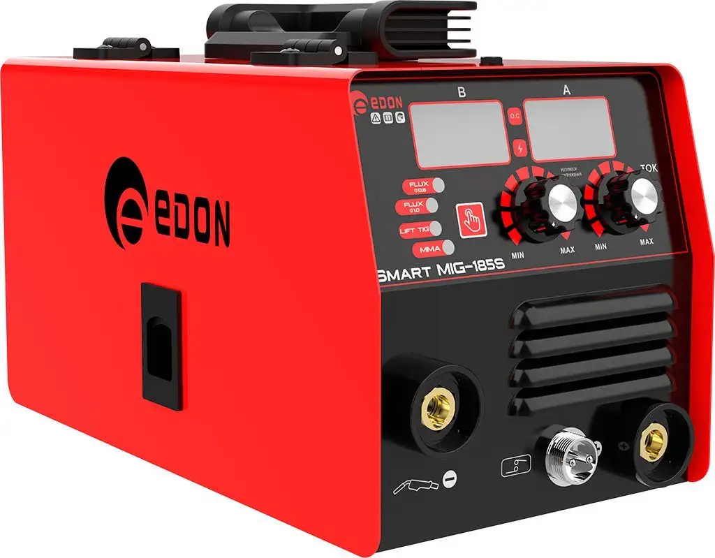 Сварочный инвертор Edon Smart MIG-185S подходит для разных типов сварки, таких как ручная дуговая (MMA), полуавтоматическая (MIG/MAG/FCAW) и аргонодуговая (TIG). Он работает от стандартной сети 220 В и не предназначен для пониженного напряжения. Аппарат легко переносить благодаря небольшой массе — всего 2,9 кг, а размеры позволяют удобно хранить и транспортировать. В нем используются электроды диаметром 2–4 мм и проволока 0,8–1 мм, что позволяет выполнять различные сварочные задачи. В комплект входит сварочный кабель, горелка, проволока и руководство по эксплуатации, что делает его готовым к использованию сразу после покупки.