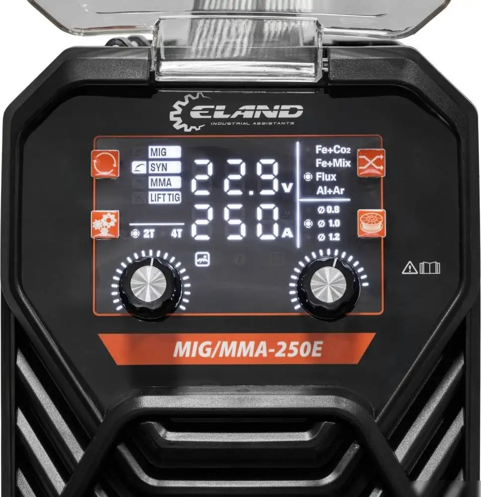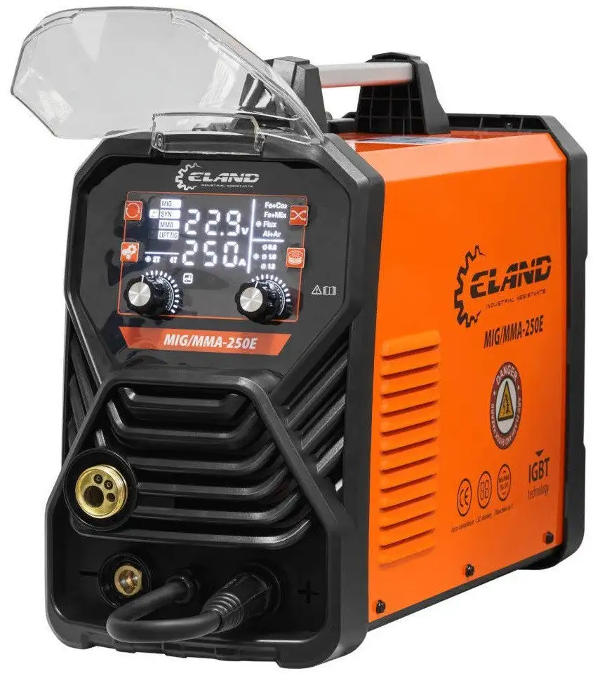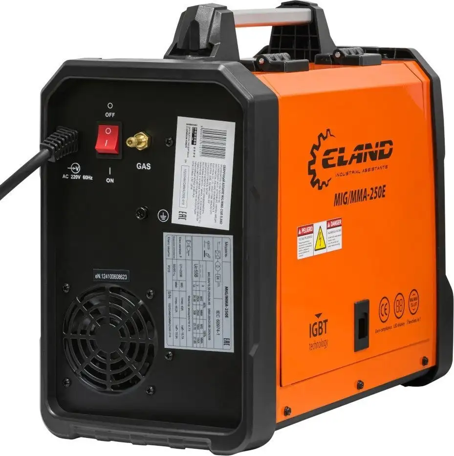 Сварочный инвертор ELAND MIG/MMA-250E подходит для ручной и полуавтоматической сварки, выполняя работу в сетях с напряжением 220 В. Его сварочный ток регулируется в диапазоне от 15 до 250 А, что позволяет работать с разными материалами и толщинами металла. Аппарат имеет функцию горячего старта, которая помогает легче начать сварку, и форсаж дуги, чтобы стабильно держать дугу. Благодаря антизалипанию электрода, процесс сварки становится более удобным и безопасным. Синергетический режим автоматизирует настройку параметров, делая работу проще для новичков. Для работы используется электрод диаметром 2–4 мм и проволока 0.8–1.2 мм, что расширяет возможности сварки. Инвертор обладает мощностью 6.8 кВт и продолжительностью нагрузки 60%, что обеспечивает стабильную работу в течение длительного времени. Он компактный и легкий, весит всего 6.2 кг, что удобно для переноски и хранения. В комплект входит все необходимое для сварки, включая горелку, кабели, сварочный щиток и руководство. Этот инвертор отлично подойдет как для профессионалов, так и для домашних мастеров.