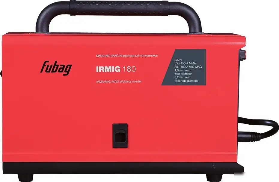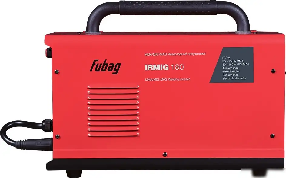ручная дуговая сварка (MMA)/полуавтоматическая сварка (MIG MAG FCAW), входное напряжение 230 В, сварочный ток: 30–180 А, диаметр электрода: 1.6–4 мм, 8.8 кг