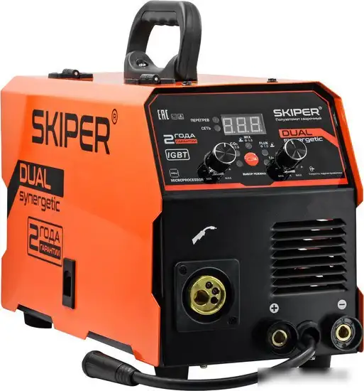 Сварочный инвертор Skiper MIG/MMA-260D предназначен для различных видов сварки, таких как ручная дуговая (MMA), полуавтоматическая (MIG/MAG) и аргонодуговая (TIG). Он работает при напряжении 230 В и имеет максимум сварочного тока до 260 А, что позволяет выполнять разные задачи. Модель обладает мощностью 5.8 кВт и продолжительностью нагрузки 50%, что обеспечивает стабильную работу. Вес устройства всего 7.9 кг, его удобно переносить и использовать на месте работы. В комплект входит сварочный еврорукав, кабели и руководство, все необходимые для начального использования. Благодаря синергетическому режиму, настройка работы станет проще и быстрее.