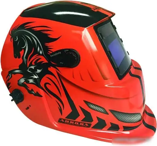 Сварочная маска Aurora A-777 (автомастер) отлично подходит для разных видов сварки, таких как MMA, TIG и MIG/MAG. Она оснащена светофильтром с классом 1/2/1/1 и возможностью плавной регулировки затемнения от 9 до 13 DIN, что обеспечивает хорошее качество работы и защиту глаз. Размер поля зрения составляет 98 на 43 мм, что удобно для обзора. Маска быстро реагирует на вспышки — время срабатывания темного фильтра всего 0.033 мс, а время возвращения к светлому — от 250 до 800 мс. Вес всего 450 г, что делает её комфортной для длительной работы. Для удобства регулировки предусмотрены внешние и внутренние механизмы, а также съемные пластины и батареи. Она также защищает от вредных УФ и ИК излучений, что важно для здоровья сварщика.