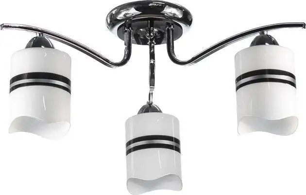 люстра средней высоты, плафон белый/рисунок (стекло), каркас серебристый