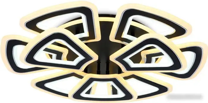 Припотолочная люстра Ambrella Acrylica FA8893 выполнена в современном стиле и отлично подойдет для освещения больших комнат. В неё встроено 9 светодиодов, которые обеспечивают яркий свет с мощностью 210 Вт и световой поток 15750 лм. Благодаря дистанционному управлению вы можете легко регулировать яркость и цветовую температуру от 3000 до 6400 К, создавая желаемую атмосферу. Каркас выполнен из прочного металла в черном цвете, а плафоны — из акрила в белом и черном. Размеры люстры — длина 65 см, ширина 64 см, высота 13 см, вес — 4.8 кг. Эта модель не поворотная, что делает монтаж проще и надежнее. В комплекте идут лампочки, поэтому устройство сразу готово к использованию. Современный дизайн и регулировки делают эту люстру удобной и универсальной для различных интерьеров.