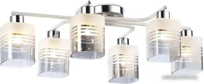 Люстра Ambrella light TR TR303207 — это современная потолочная модель с шестью лампочками, которая хорошо подойдет для комнаты средней площади. Ее длина составляет 71 см, ширина — 40 см, а высота — 20 см, что позволяет удобно разместить свет во многих помещениях. Каркас выполнен из металла в белом цвете, а плафоны сделаны из стекла с белым и дымчатым оттенками, создавая мягкий и уютный свет. Люстра рассчитана на использование ламп с цоколем E27 мощностью до 360 Вт, но лампочки в комплект не входят, их нужно покупать отдельно. Благодаря современному дизайну она легко впишется в любой интерьер. Устройство крепится к потолку, что обеспечивает его надежность и стабильность. Простая установка и стильный внешний вид делают эту люстру популярным выбором. Эта модель подарит комнате хороший яркий свет и гармонично дополнит дизайн.