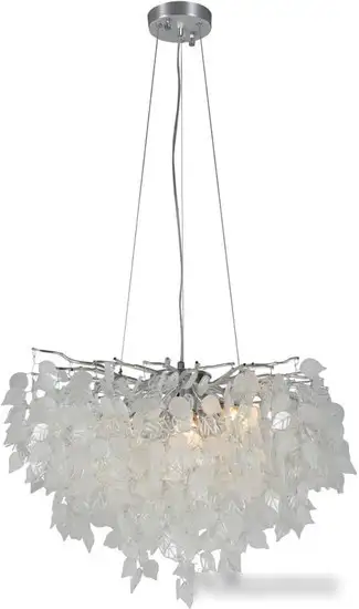 подвесная люстра, плафон белый (стекло), каркас серебристый