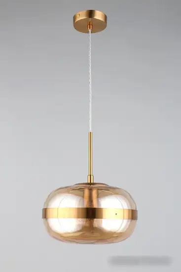 Эта люстра средней высоты отлично подойдет для освещения вашей комнаты. Она крепится к потолку с помощью планки и имеет один светильник мощностью 40 Вт с цоколем E27. Каркас выполнен из прочного металла и окрашен в бронзовый цвет, что создает современный стиль. Световой поток составляет 420 люмен, обеспечивая достаточно яркости. Абажур сделан из прозрачного стекла, он красиво рассеивает свет. Размеры люстры — 25х25 см, а её высота — 40 см. В комплект лампочка не входит, поэтому вы можете выбрать модель по своему вкусу. Вес устройства — 1,7 кг, его легко монтировать. Благодаря простому дизайну эта люстра подойдет к разным интерьерам.