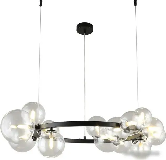 люстра средней высоты, плафон прозрачный (стекло), каркас черный