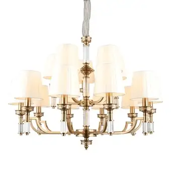 подвесная люстра, плафон белый (текстиль), каркас бронзовый