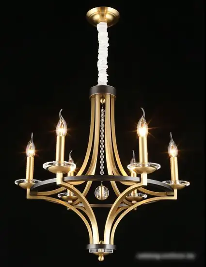 Подвесная люстра Aployt Wikta APL.805.03.06 отлично подойдет для обеденных и гостевых зон. Она имеет классический дизайн с бронзовым каркасом, что позволяет легко сочетать её с разными стилями интерьера. Люстра оснащена шестью лампами с цоколем E14, каждая мощностью 40 Вт, что обеспечивает яркое освещение. Благодаря размеру 60х60 см и высоте 150 см она хорошо заполняет пространство светом. Простая установка на планку делает монтаж быстрым и удобным. Этот аксессуар не оснащён функциями умного дома, дистанционным управлением или регулировкой яркости, что делает управление стандартным. Каркас выполнен из металла, что обеспечивает прочность и долговечность. Вес люстры составляет 6,3 кг – она надёжно держится на потолке и легко выдержит длительную эксплуатацию.