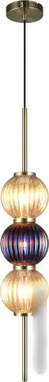 подвесная люстра, плафон янтарный/синий (стекло), каркас латунь