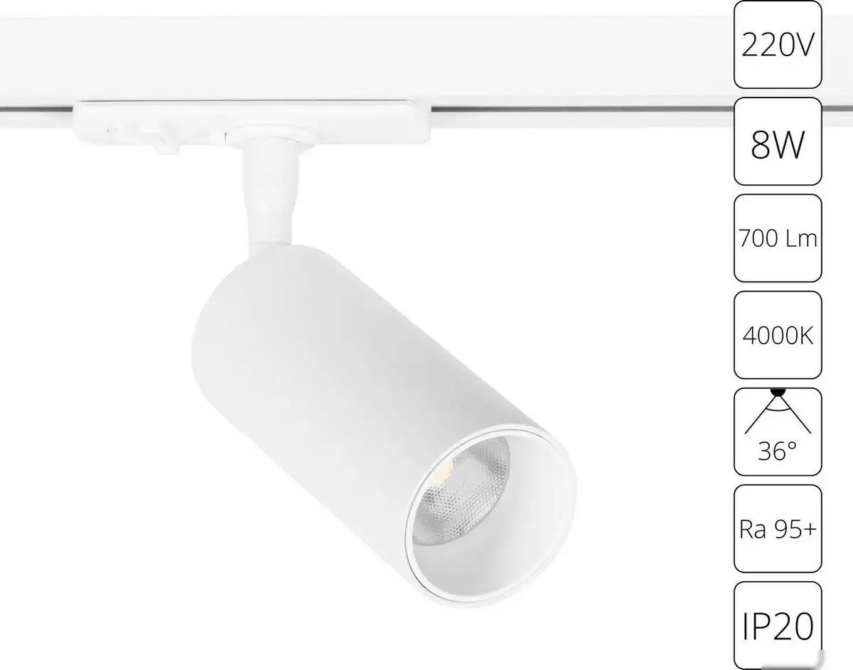 трековый светильник, плафон белый, каркас белый