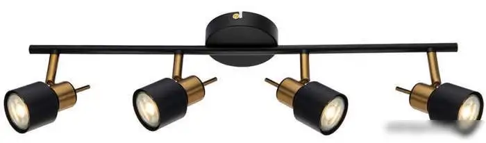 Спот Arte Lamp Almach A1906PL-4BK — это современное потолочное освещение с четырьмя лампами мощностью по 50 Вт. Он оснащён четырьмя поворотными плафонами с золотистым и черным цветом, что позволяет направлять свет туда, где это нужно. Каркас сделан из металла, а плафоны — из пластика, что обеспечивает долговечность и стильный внешний вид. В комплект не входит лампочка, поэтому вы можете выбрать светодиодные или галогенные лампы по своему вкусу. Размеры спота — 60 см в длину, 6 см в ширину и 16 см в высоту, а вес составляет 0,79 кг. Устройство включает встроенный выключатель для удобства включения и выключения. А благодаря повышенной влагозащищенности IP20 его можно использовать в жилых комнатах. Спот не регулируется по яркости или цветовой температуре, но позволяет легко направлять свет благодаря поворотным лампам. Этот спот идеально подходит для современного интерьера, обеспечивая яркое и направленное освещение.