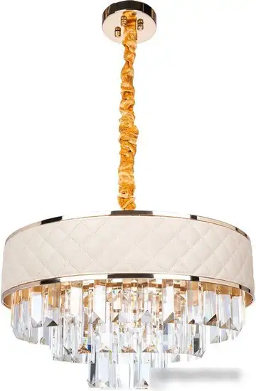 подвесная люстра, плафон бежевый (хрусталь), каркас золотистый