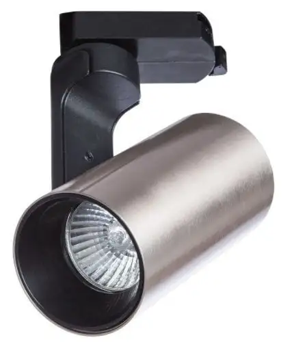 трековый светильник, плафон серебристый (пластик), каркас черный
