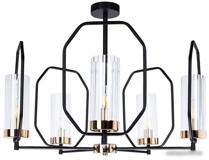 Эта люстра средней высоты Arte Lamp Celaeno A7004PL-5BK хорошо подойдет для гостиной или спальни. Она оснащена пятью лампами с цоколем E14, которые можно использовать с накаливаниями или светодиодами. Люстра закрепляется на потолке и имеет размеры 68 см по длине и ширине, а высота составляет 51 см. Каркас выполнен из прочного металла черного цвета, а плафоны сделаны из прозрачного стекла. Общий вес устройства — около 3 кг, что облегчает монтаж. Люстра не поворотная, лампы не входят в комплект. Основные функции — равномерное освещение и современный дизайн.