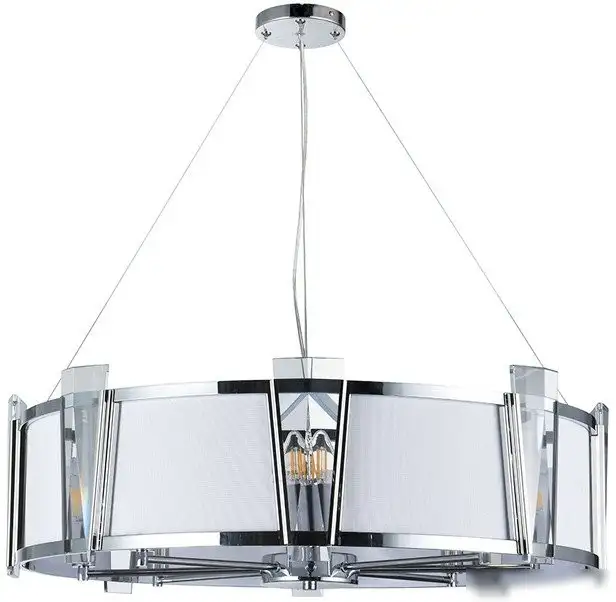подвесная люстра, плафон белый/серебристый (металл/текстиль), каркас серебристый