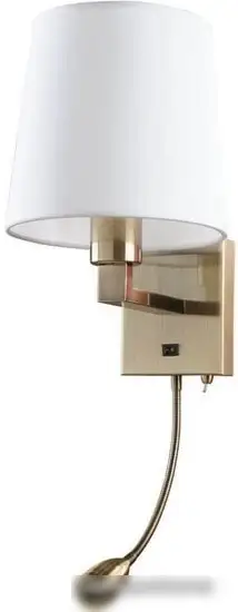 Бра Arte Lamp Hall A9246AP-2AB — это стильное настенное освещение с одним плафоном белого цвета. Оно выполнено из прочного металла с бронзовым каркасом и текстильным плафоном, что создает мягкий и приятный свет. Бра имеет мощность лампы 40 Вт и использует цоколь E27, что позволяет выбрать подходящую лампу по вашему вкусу.Выключатель встроен прямо в корпус, что делает включение удобным. Размеры изделия — длина 18 см, ширина 23 см, высота 56 см, вес всего 1 кг. Оно не регулируется по яркости или высоте, и не имеет пульта дистанционного управления. Благодаря классическому дизайну и современному стилю оно легко впишется в любой интерьер. Бра предназначено для использования с накаливаниями, лампочка в комплект не входит. Это изделие подходит для создания уютной атмосферы и надежного освещения в комнате.