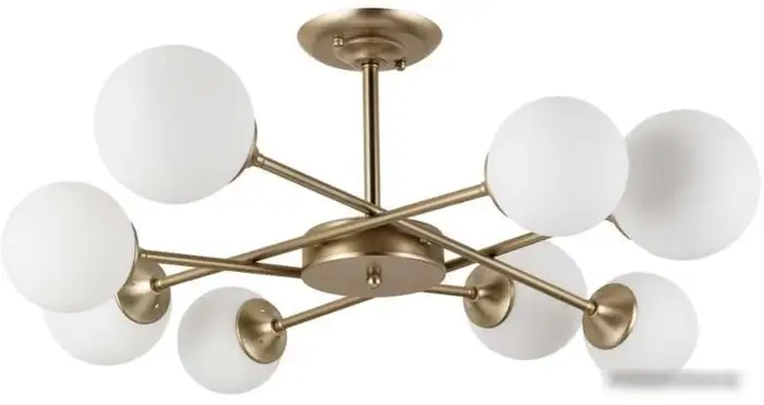 Люстра среднего размера Arte Lamp Marco A2703PL-8SG отлично подходит для больших комнат с потолками. Она опирается на металлический золотистый каркас и украшена белыми стеклянными плафонами, создавая приятное и мягкое освещение. В люстре установлено 8 ламп мощностью 60 Вт каждая, что обеспечивает яркий свет. Размеры — длина и ширина 81 см, высота 34 см. Люстра работает без выключателя и пульта, потому управлять ею можно вручную. Эта модель не регулируется по яркости или цветовой температуре, что подходит для постоянного освещения. Простая установка на планку делает монтаж быстрым и удобным. Поворотных ламп или встроенной подсветки в конструкции нет, но она отлично дополняет современный интерьер. Благодаря стильному дизайну она станет ярким акцентом в любой комнате.