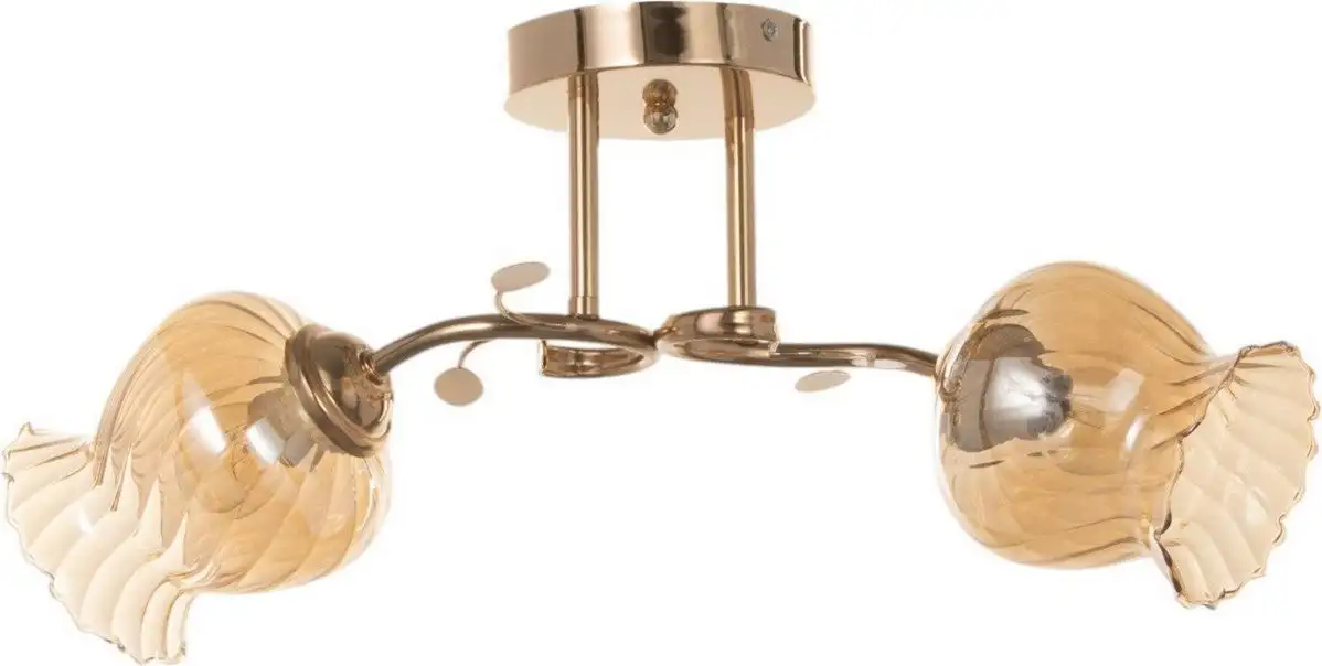 припотолочная люстра, плафон бежевый/янтарный (стекло), каркас золотистый