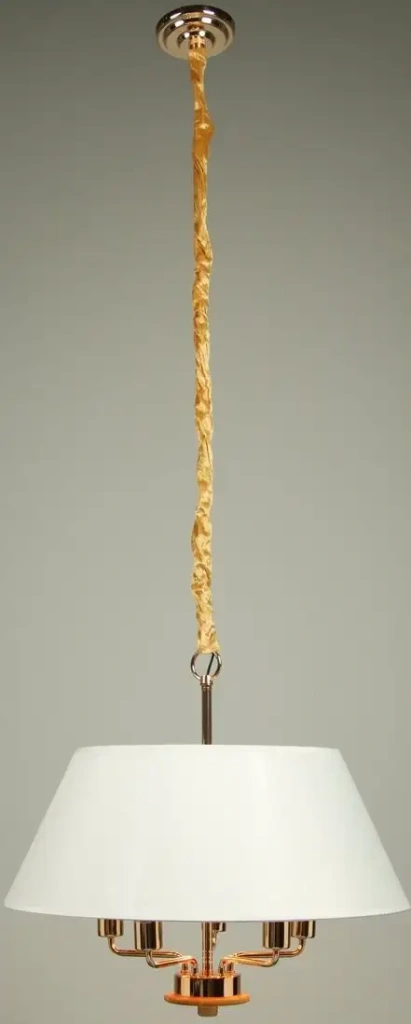 подвесная люстра, плафон белый (пластик/текстиль), каркас золотистый