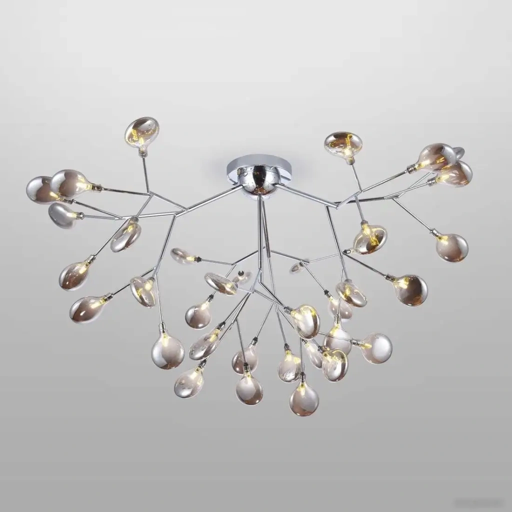 люстра средней высоты, плафон серый (стекло), каркас хром