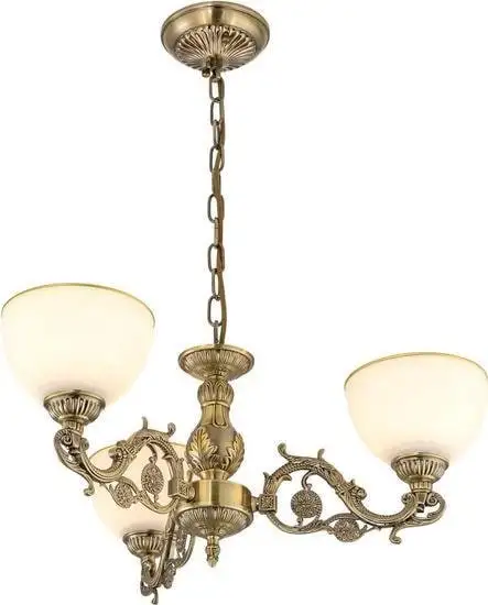 подвесная люстра, плафон бежевый (стекло), каркас бронзовый