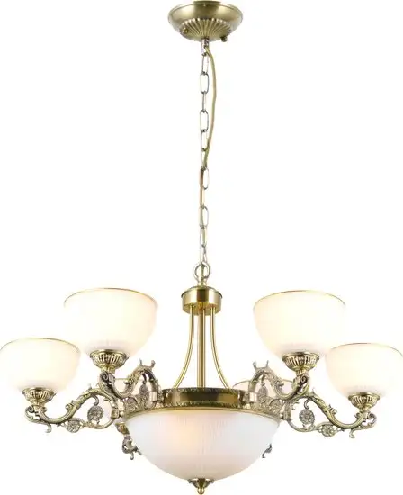 подвесная люстра, плафон белый/бронзовый (стекло), каркас бронзовый