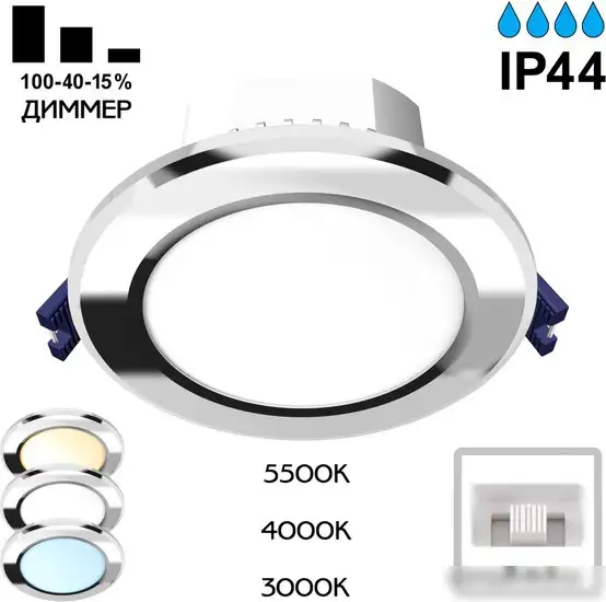 Точечный светильник Citilux Акви CLD008111V подходит для потолочного освещения. Он оснащён встроенными светодиодами мощностью 7 Вт, которые обеспечивают яркость 600 люмен. Светильник имеет белый пластиковый плафон и металлический каркас с хромовым покрытием, что придает современный вид. Его длина и ширина по 11 см, а высота — 4,7 см. Светильник легко устанавливается врезным креплением и имеет регулируемую яркость и цветовую температуру от 3000 до 5500 К, что позволяет создавать комфортное освещение. Он предназначен для использования в помещениях с повышенной влажностью — класс защиты IP44. Благодаря этому, светильник подходит для кухонь, ванных комнат и других влажных зон. В комплект входит лампа, что удобно сразу начать эксплуатацию. Такой светильник легко адаптировать под нужды освещения в вашем доме или офисе.