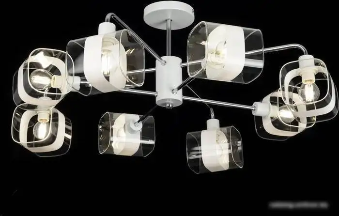 люстра средней высоты, плафон прозрачный (стекло), каркас белый