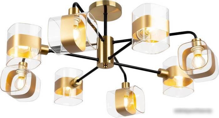 Люстра средней высоты Citilux Бертон создает яркое освещение с помощью восьми ламп мощностью 480 Вт и световым потоком 7200 люмен. Она располагается на потолке и хорошо подходит для просторных помещений благодаря ширине и длине 76 см. Черный металлический каркас и прозрачные стеклянные плафоны придают современный и стильный вид. Высота люстры составляет 31 см, что делает её удобной для комнат средних размеров. Люстра легко монтируется и обеспечивает равномерное освещение. Плафоны с цоколем E14 позволяют использовать лампы различной яркости и цвета по вашему желанию. Изготовленная из прочных материалов, она выдерживает повседневное использование. Отсутствие влагозащищенности не влияет на использование в сухих помещениях. Например, она отлично подойдет для гостиной или столовой, наполняя пространство светом и стилем.