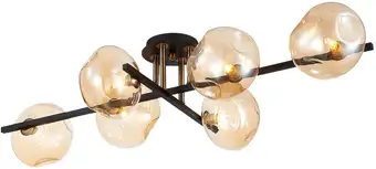 Люстра средней высоты Citilux Девис CL201161 отлично подходит для комнат с высоким потолком. Она имеет шесть лампочек мощностью по 40 Вт каждая, что обеспечивает хороший яркий свет. Каркас выполнен из прочного металла коричневого цвета, а плафоны — из стекла в шампань-цвете. Светильник располагется прямо у потолка и имеет размеры 89 см в длину и 41 см в ширину. Он не регулирует яркость и цветовую температуру, но создает яркий световой поток в 3600 люмен. Люстра не оснащена встроенными светодиодами, есть возможность использовать галогенные лампы. Поверхность не влагозащищена, поэтому её лучше устанавливать в сухих помещениях. Простая конструкция и светлый дизайн делают её подходящей для различных интерьеров. Крепится надежно, не требует монтажа дополнительных устройств.