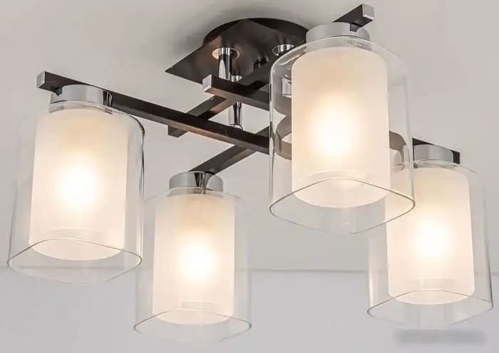 припотолочная люстра, плафон прозрачный (стекло), каркас коричневый