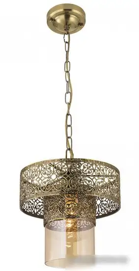 подвесная люстра, плафон шампань (стекло/металл), каркас бронзовый