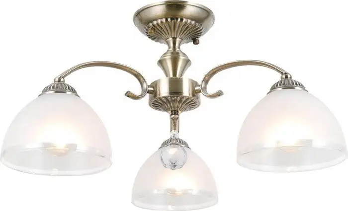 Припотолочная люстра Citilux Франческа CL417133 выполнена в классическом стиле и отлично подходит для украшения различных помещений. Корпус изготовлен из металла с бронзовой окраской и украшен стильными литыми рожками. Стеклянные полуматовые плафоны с прозрачной окантовкой создают мягкое и приятное освещение. Люстра украшена хрустальной подвеской с алмазной огранкой, которая добавляет ей изящества. В ней установлены три лампы с цоколем Е27, допускающие использование ламп мощностью до 75 Вт; светодиодные лампы позволят увеличить яркость и снизить потребление. Люстру легко подключить как с одноклавишным, так и с двухклавишным выключателем. Подходит для всех типов потолков, включая натяжные, благодаря планковому креплению. Размеры изделия — диаметр 52 см и высота 26 см — обеспечивают хорошую подсветку в комнате площадью около 10 м². Эта люстра надежно выполнена из металла и стекла, отлично впишется в классический дизайн интерьера.