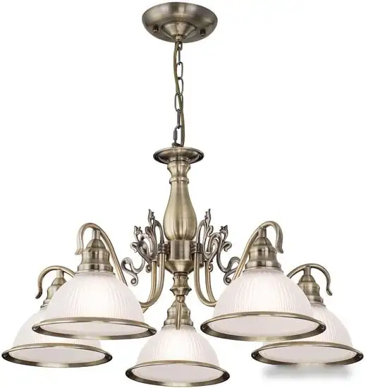 люстра, 5×75 Вт, плафон белый, каркас бронзовый