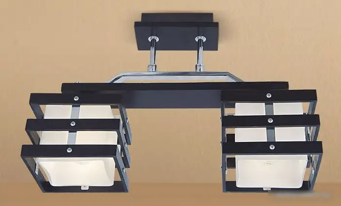 - Стильный дизайн с белыми и коричневыми плафонами — подчеркнет интерьер вашей комнаты.