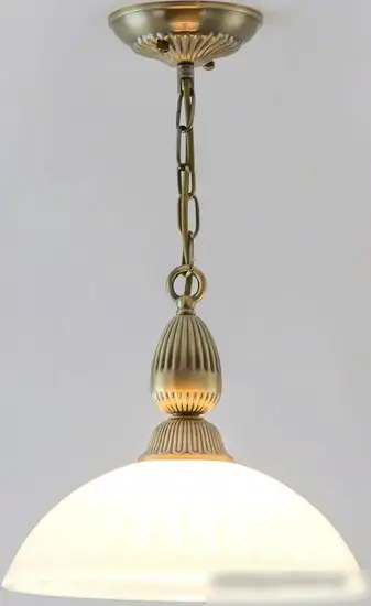 подвесная люстра, плафон белый (стекло), каркас бронзовый