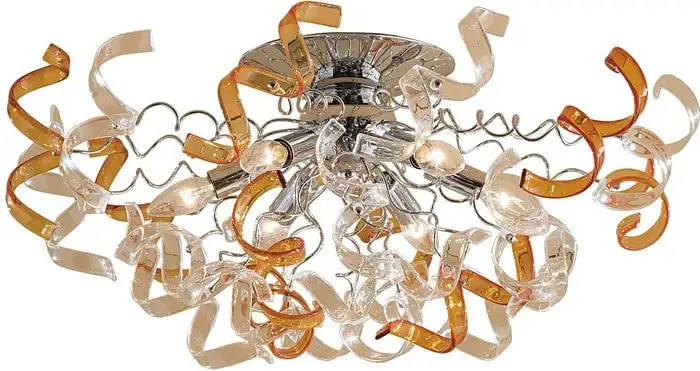 люстра, 6×60 Вт, плафон оранжевый/прозрачный, каркас хром