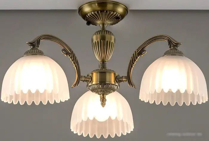 подвесная люстра, плафон белый (стекло), каркас бронзовый