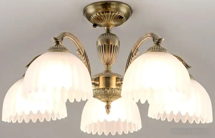 подвесная люстра, плафон белый (стекло), каркас бронзовый