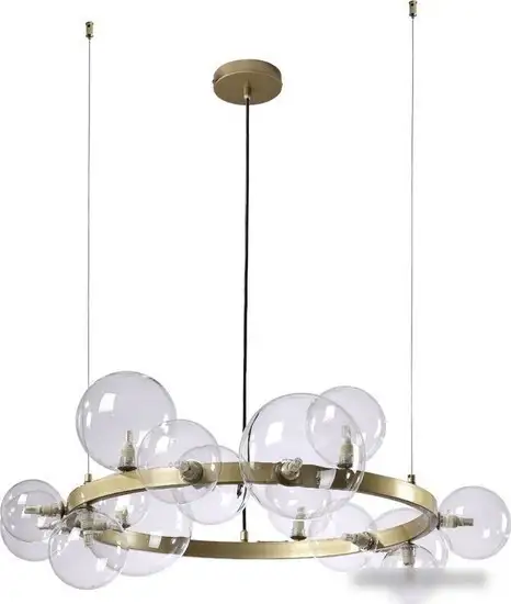 подвесная люстра, плафон прозрачный (стекло), каркас золотистый