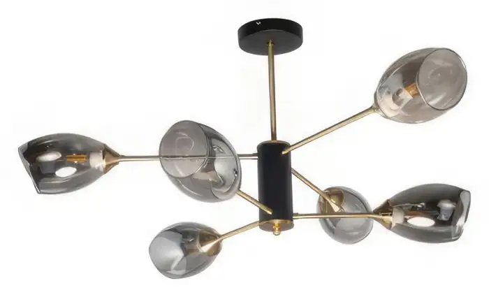 Эта современная люстра средней высоты отлично подойдет для освещения помещения с потолком. Она имеет шесть ламп мощностью по 40 Вт каждая, что обеспечивает яркое и равномерное освещение. Каркас выполнен из металла в бронзовом и черном цвете, а плафоны сделаны из стекла с дымчатым оттенком, создавая стильный вид. Размеры люстры — 93 см в длину и ширину, а высота — 41 см, что делает её универсальной для разных помещений. Крепится она на планку и легко устанавливается. Поддерживает цоколь E14, что позволяет выбрать подходящие лампы. Встроенных светодиодов нет, но можно использовать любые лампы с цоколем E14. Люстра обладает современным дизайном, который хорошо сочетается с разными интерьерами.