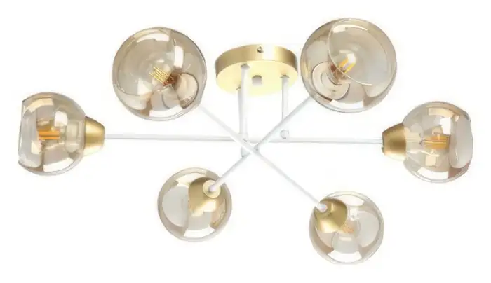 Эта припотолочная люстра De City Вита создаст уют в вашей комнате благодаря современному дизайну и мягкому свету. Ее белый и золотистый каркас сделаны из металла, а плафоны из стекла, что добавляет ей элегантный вид. Люстра оснащена шестью лампами с цоколем E27, каждая мощностью 60 Вт, что обеспечивает яркое освещение. Планка крепления длиной 70 см и высотой 21 см позволяет удобно установить устройство на потолок. Она не имеет встроенных светодиодов и работает с обычными лампами, что облегчает выбор и замену. Современный дизайн хорошо вписывается в разные интерьеры благодаря универсальным цветам. Люстра легко монтируется и дополнит любой современный интерьер или гостиную.